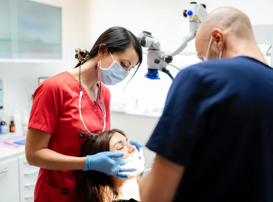 Nous utilisons des microscopes dentaires de haute précision, essentiels pour les traitements endodontiques (soins des racines). Ils permettent de détecter les plus petites fissures ou infections invisibles à l’œil nu grâce à une amplification et un éclairage optimaux.
